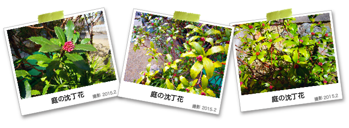 写真は10年ほど前に実家の母が荷物にそえた1枝を庭にさしたものです我が家の土になじんでこんなに大きくなりました。もうじきつぼみがはじけていい香りをはなちながら咲きだします。春も近いよ。
