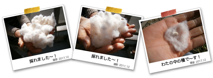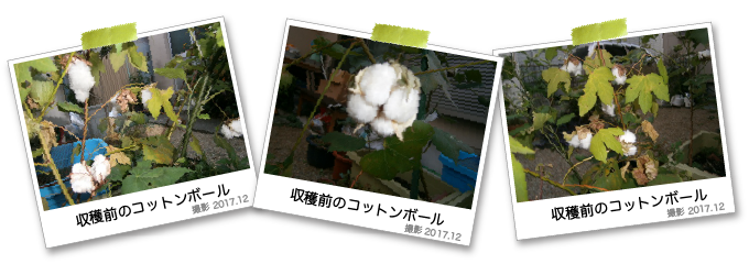 庭にはまだ木綿の木は枯れずに残っていますが、2種の種からふわふわの柔らかいコットンがとれました!
